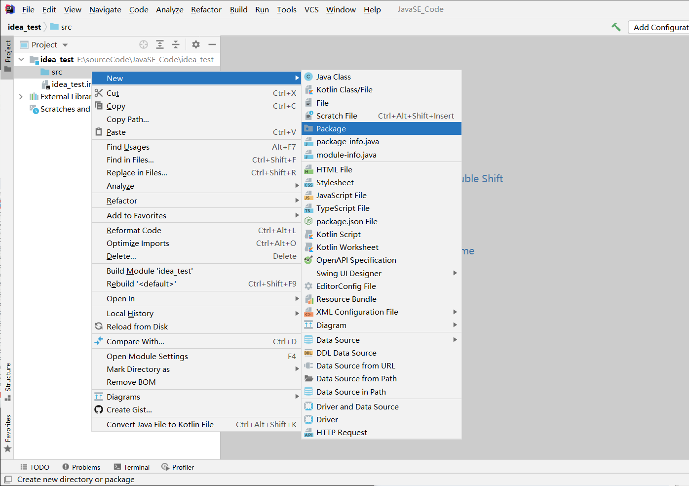 IDEA中创建包,选中src右键New,选中Package