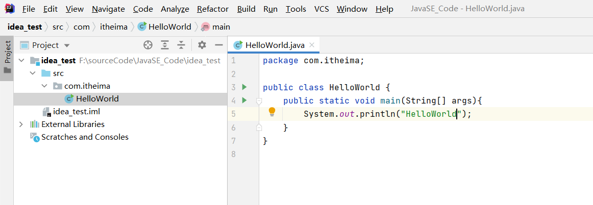 IDEA中编写代码;然后我们写这样的代码(HelloWorld案例)