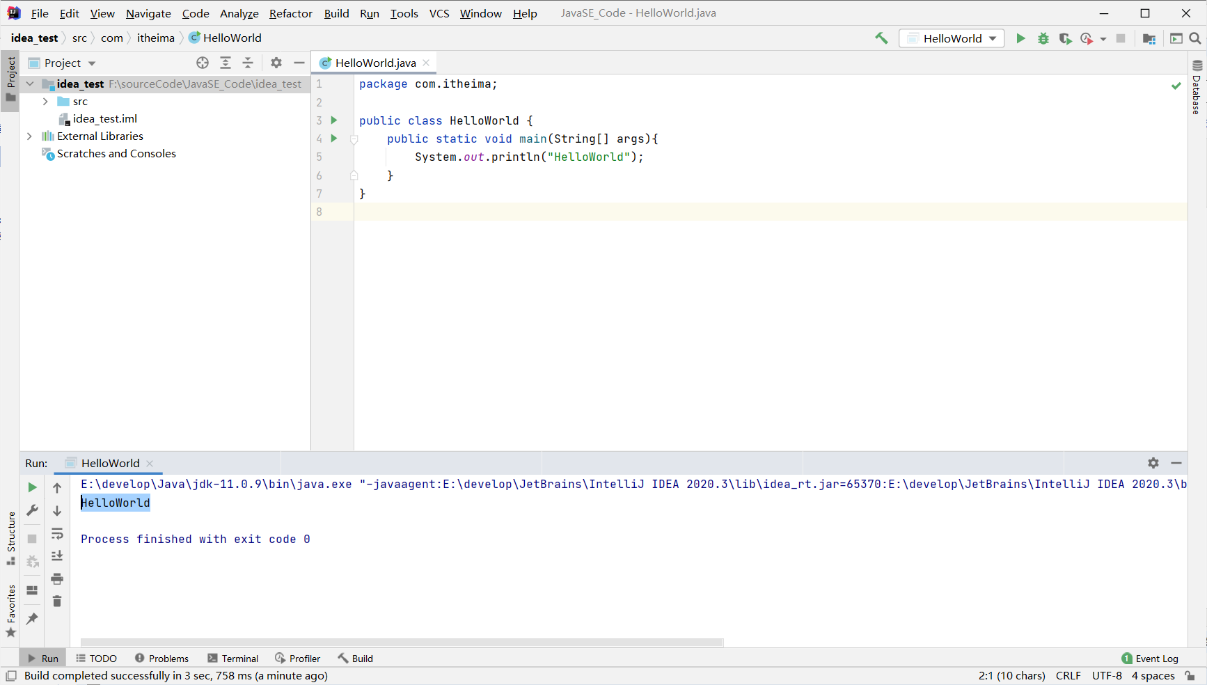 IDEA中HelloWorld步骤