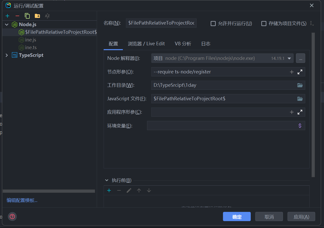 - 编辑node配置   --require ts-node/register$FilePathRelativeToProjectRoot$