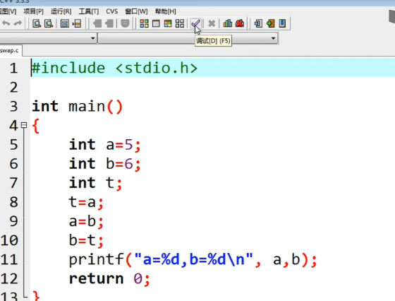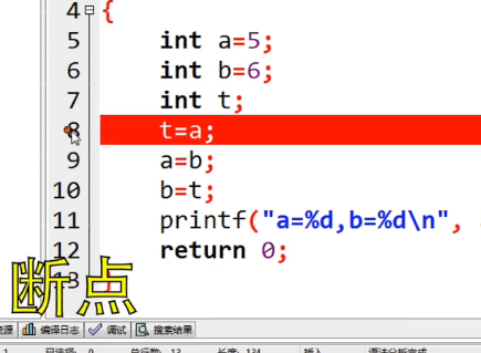 调试执行后会变成蓝色,表面这一行还没有执行,程序停在这一行之前,即将要执行这一行。