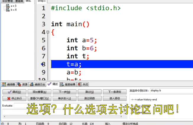 想要查看各个变量的值可以将鼠标移至变量上面。