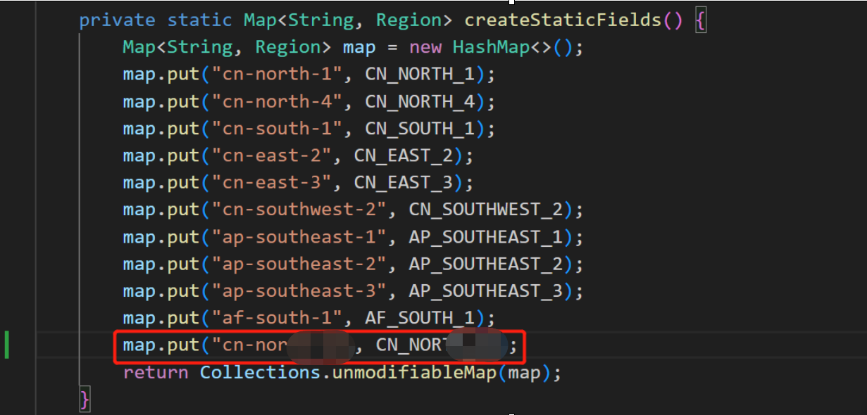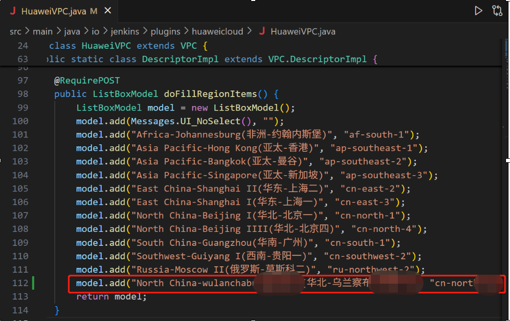在HuaweiVPC.java 包里面方法添加乌兰察布地域