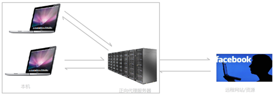 在正向代理中,Proxy和Client同属于一个LAN(图中方框内),隐藏了客户端信息;