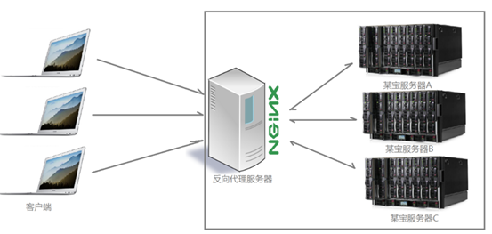 关于反向代理,先举个例子:某宝网站,每天同时连接到网站的访问人数已经爆表,单个服务器远远不能满足人民日益增长的购买欲望了,此时就出现了一个大家耳熟能详的名词:分布式部署;也就是通过部署多台服务器来解决访问人数限制的问题;某宝网站中大部分功能也是直接使用Nginx进行反向代理实现的,并且通过封装Nginx和其他的组件之后起了个高大上的名字:Tengine,有兴趣的童鞋可以访问Tengine的官网查看具体的信息:http://tengine.taobao.org/。那么反向代理具体是通过什么样的方式实现的分布式的集群操作呢,我们先看一个示意图(我把服务器和反向代理框在一块,同属于一个环境,后面我有介绍):