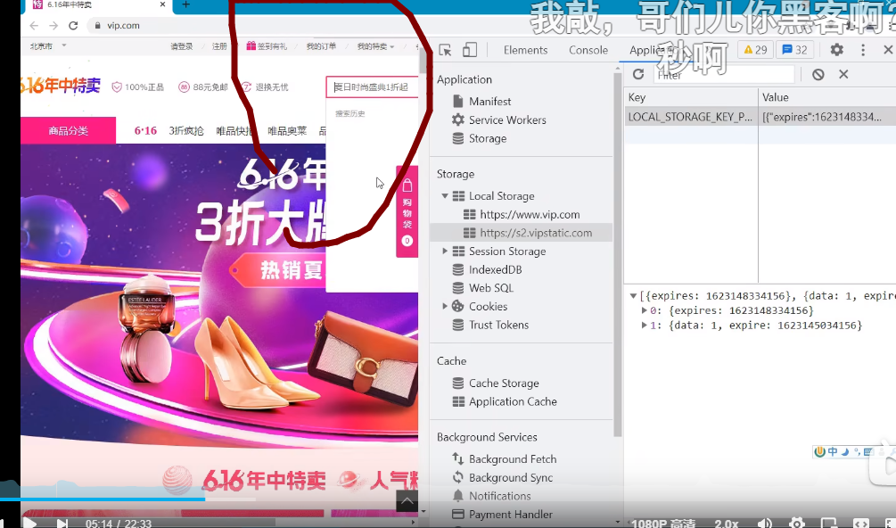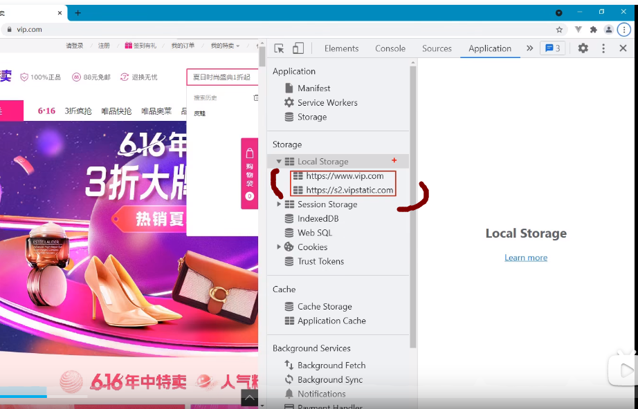 local storage里可以看到两个网站,这两个网站都属于唯品会的域名