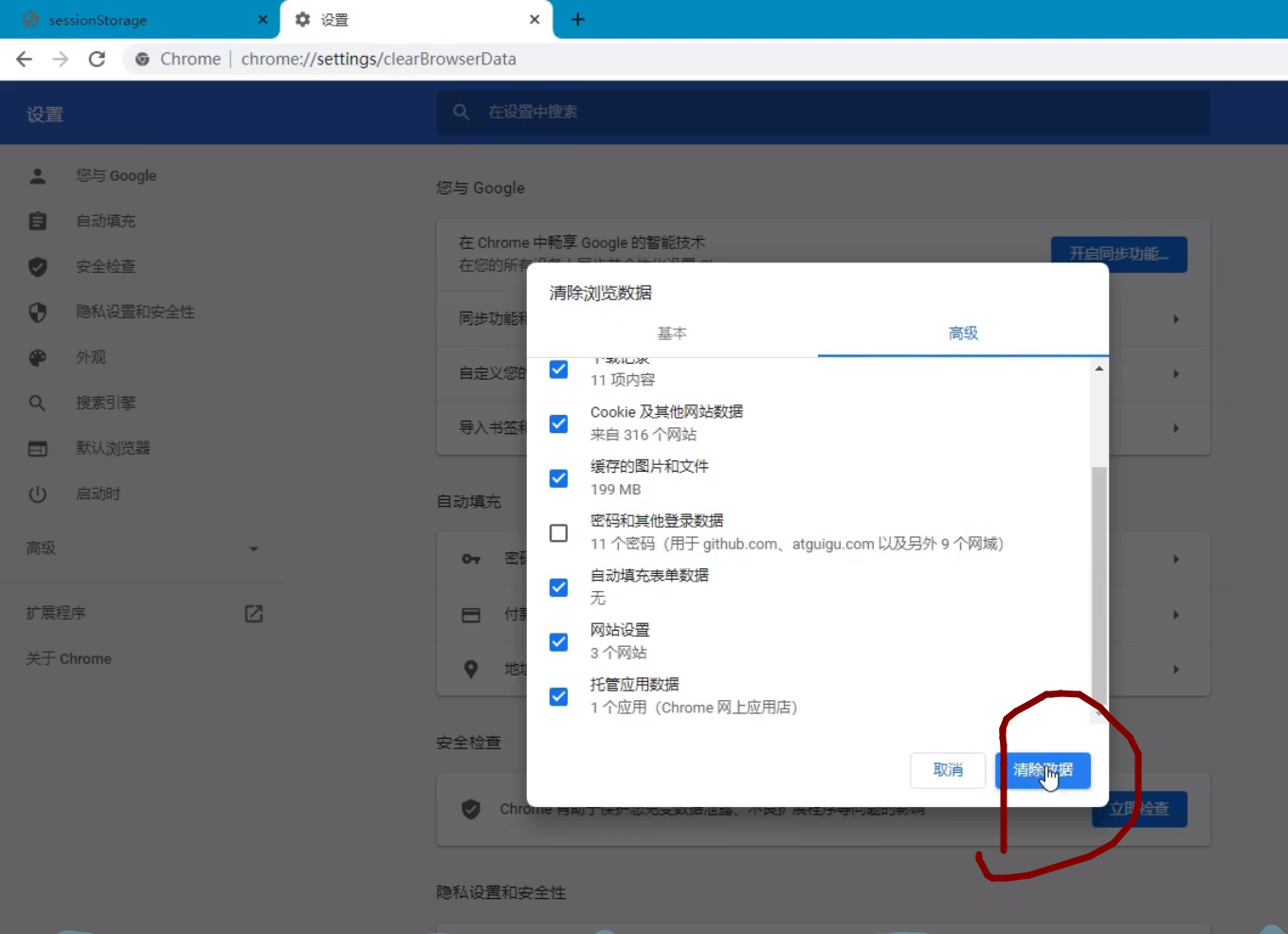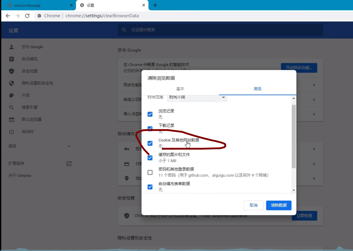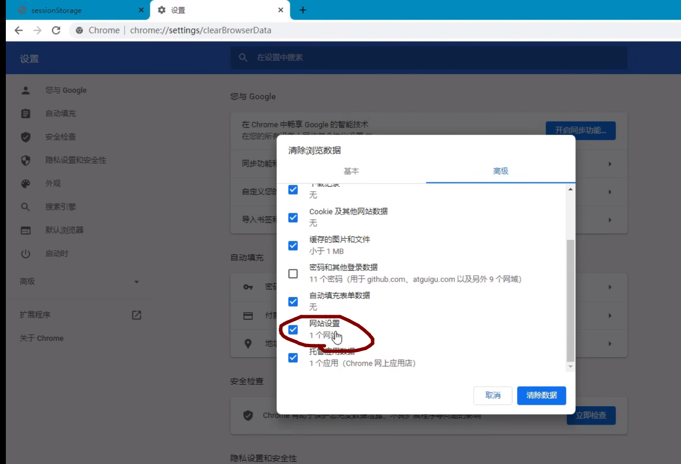 2。cookie及其他网站数据