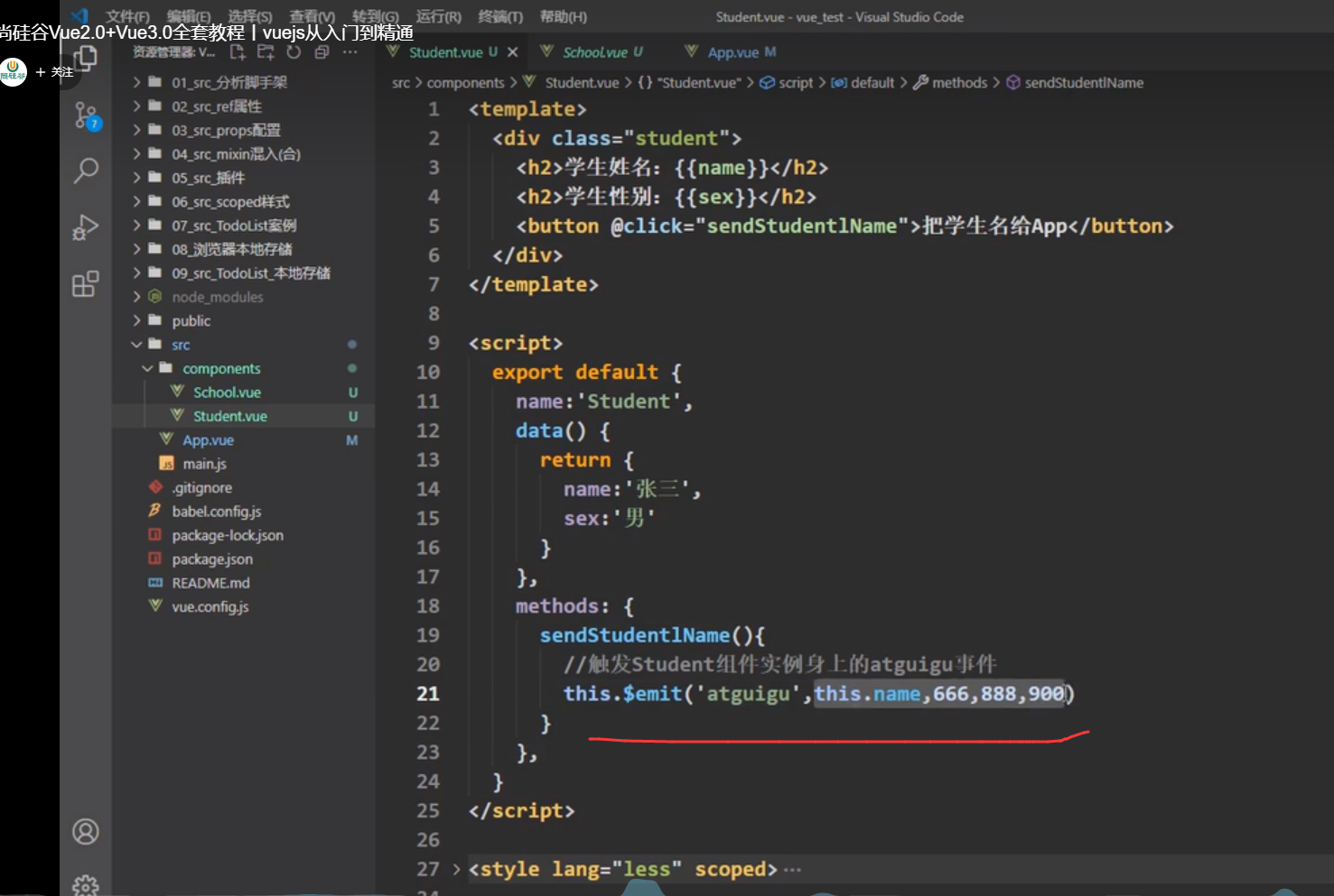 3.如果在子组件中触发自定义事件的时候想要传很多参数进去,