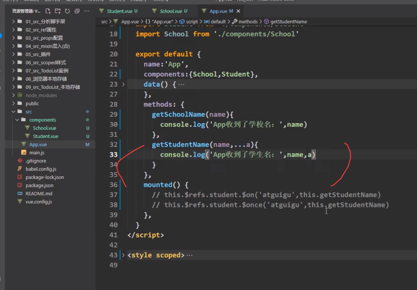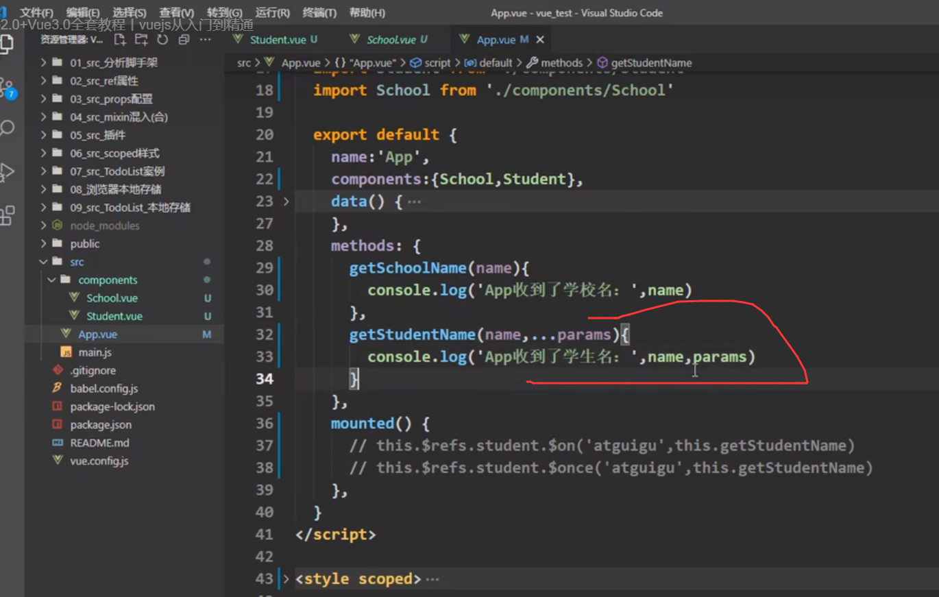 2)父组件中:【name作为一个参数正常接收,其余放到一个数组中,这是ES6的语法】