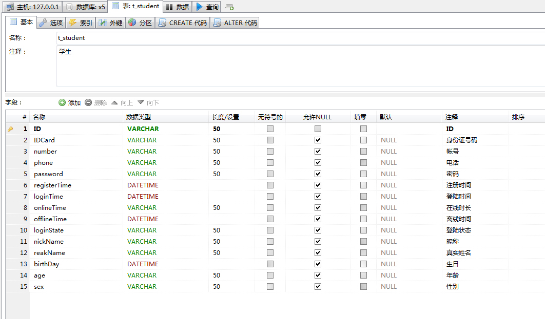 (注意事项)1 表名前缀t_ ,没有特别的间义,只是为了在数据库中,上百张表,把当前工程用到的表放到一起,找起来方便