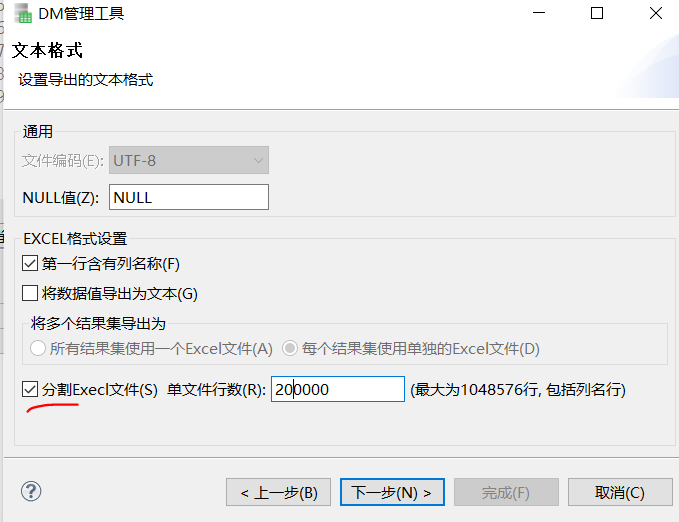 将t2表导出时,对excel文件进行分割,当个文件行号限制20w,然后进行导出