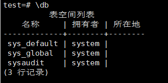 \db 列出表空间信息