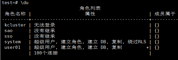 \du 列出用户角色信息