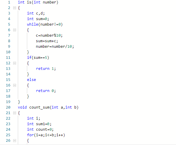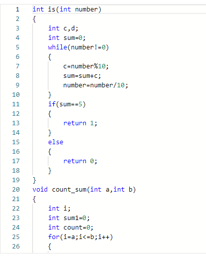 数据类型:这是一个自定义函数,定义digital,sum,count整型变量。