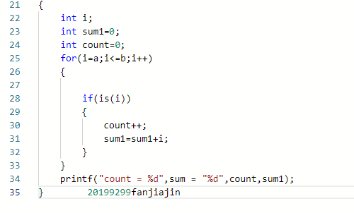 数据处理:其中a和b为左右区间,i为统计数字,sum为总和,x为各位数之和,e为函数返回值,number为实时输入参数。