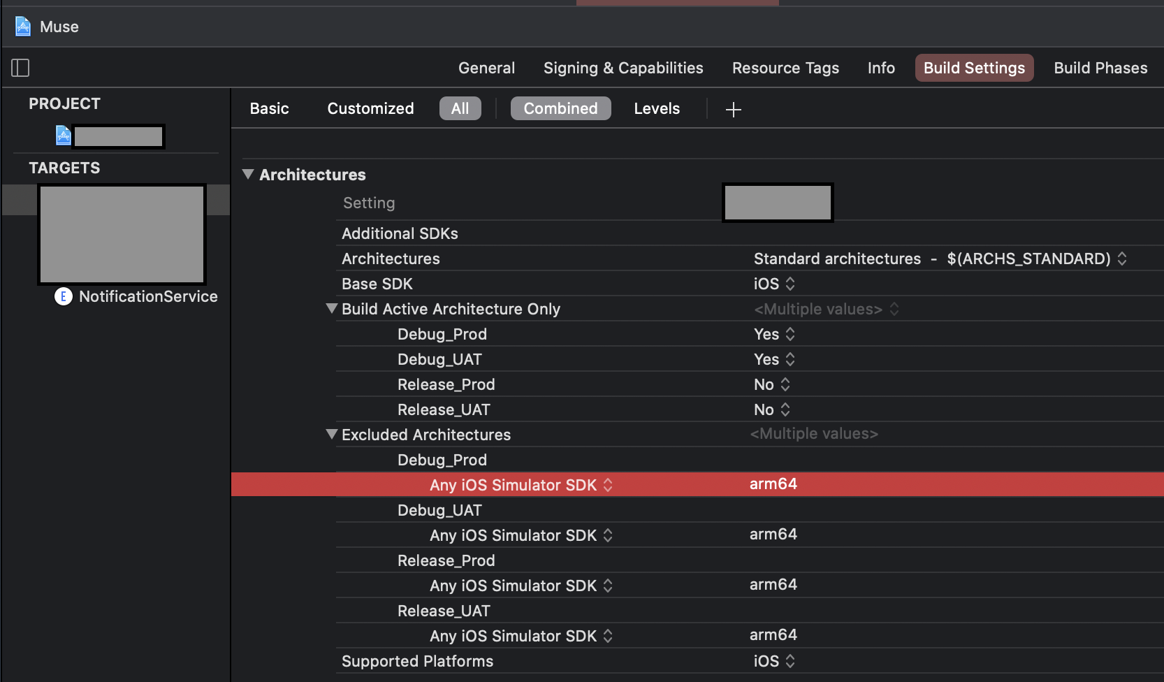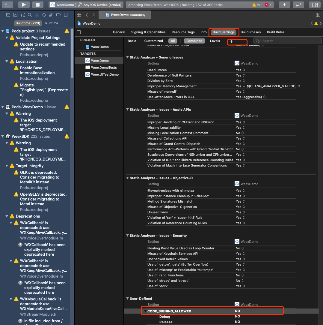 1、打开项目:TARGETS - > Build settings,添加一个参数, 点击Add User-Defined Setting,