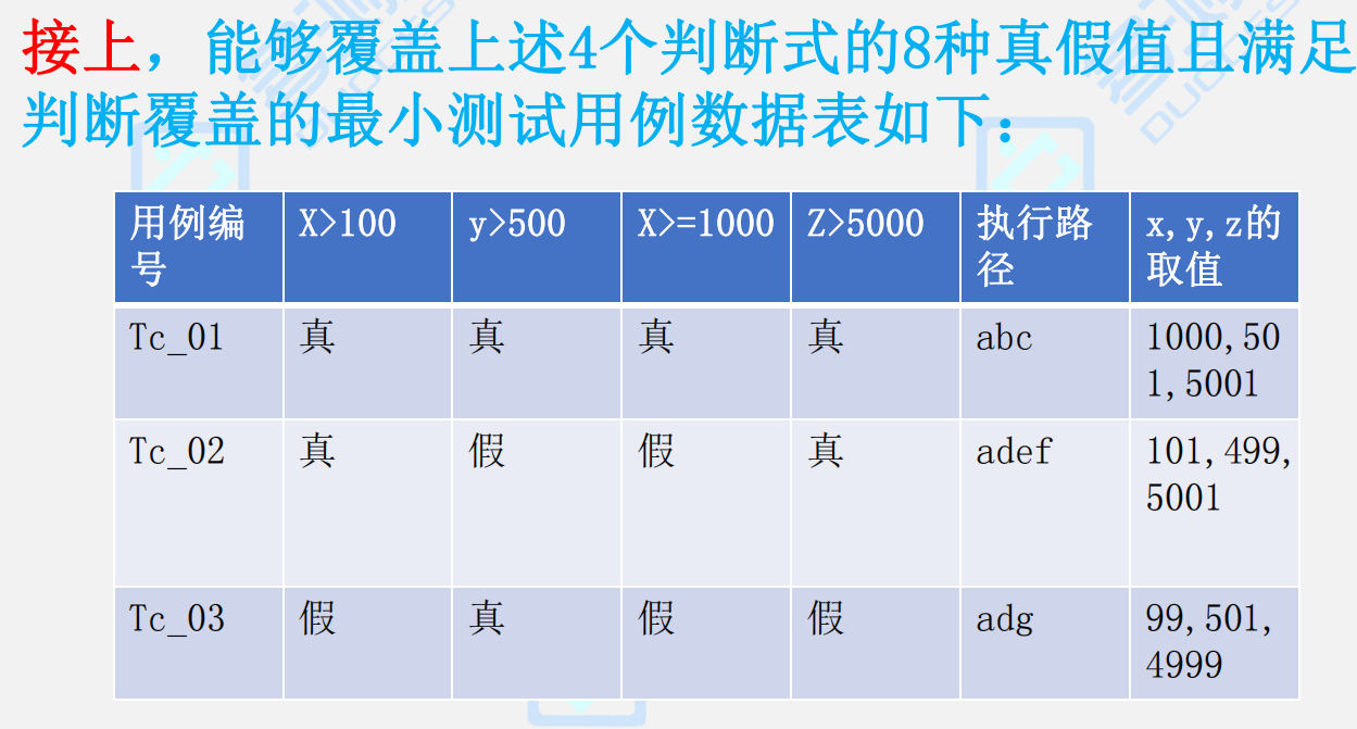 指设计若干个测试用例,使得程序运行时,每个判断条件中的每个判断式的真、假值至被执行一次
