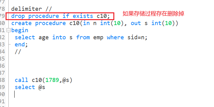 drop procedure if exists hz10; #增强健壮性, 判断是否存在指定存储过程,如果存在就删除;