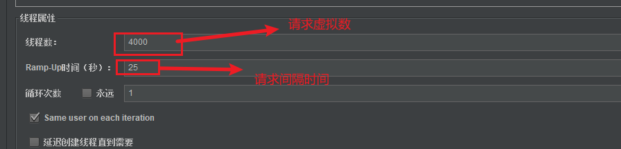 例如设置100个线程,Ramp-Up Period设置10,那每秒就会启动100/10=10个线程 设置为0,则100个线程立刻启动