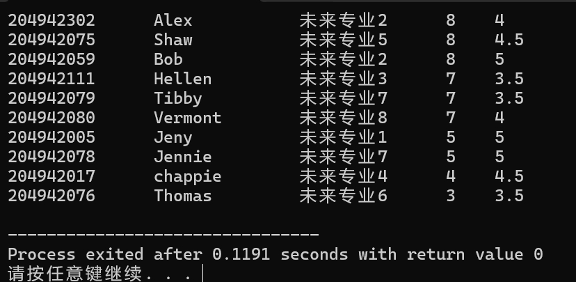 in >> p.xuehao >> p.name >> p.major >> p.score;