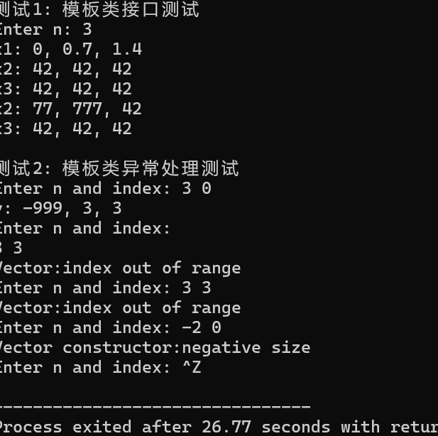 cout << "\n测试2: 模板类异常处理测试\n";