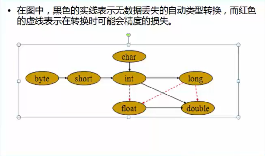 Int也可以转float但是有可能损失精度 Long也可以转为float有可能损失精度 Long也可以转为double有可能损失精度