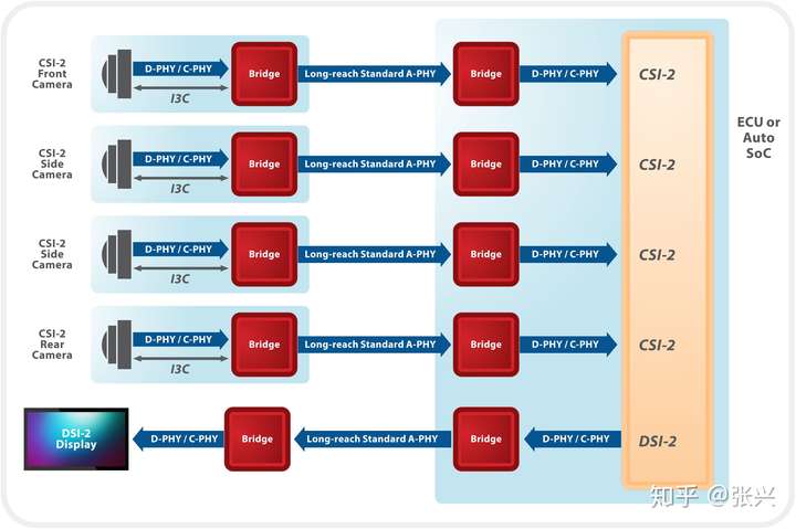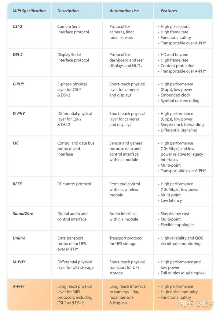 MIPI 联盟最近宣布,已经完成了对MIPI A-PHY v1.0物理层通信协议的长期开发。这是一个主要用于汽车应用的串行器-解串器(SerDes)物理层规范。在这之前MIPI已经有了整套的通信协议在camera和显示领域中大量使用.Dphy,Cphy,Mphy都能够进行大数据量的物理传输,但是这个几个物理层协议都无法进行较长距离的传输,导致了在车载和IOT领域的使用障碍。
