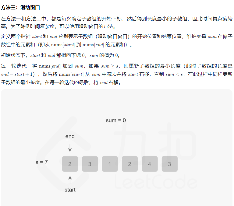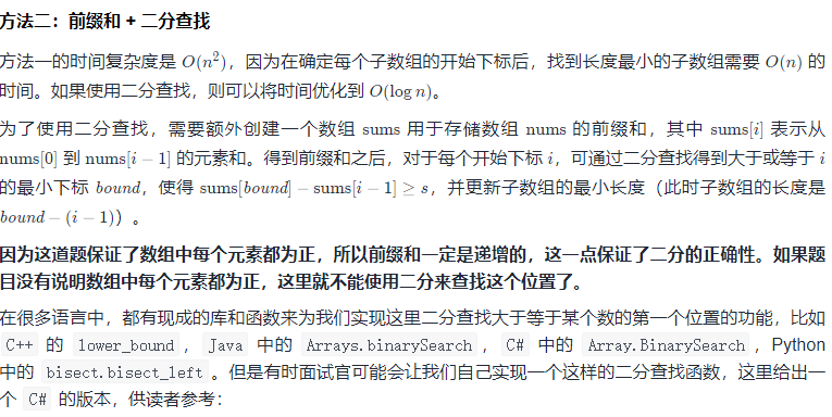 官方给的有几种解决办法,一种是暴力搜索,一种是二分查找,一种是滑动窗口。