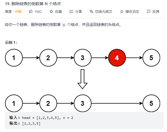 例子想法只使用了一次遍历就完成了整个过程,使用了双节点