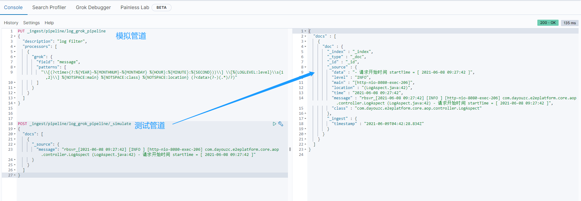 创建和测试pipeline,推荐文章:https://elasticstack.blog.csdn.net/article/details/107830887