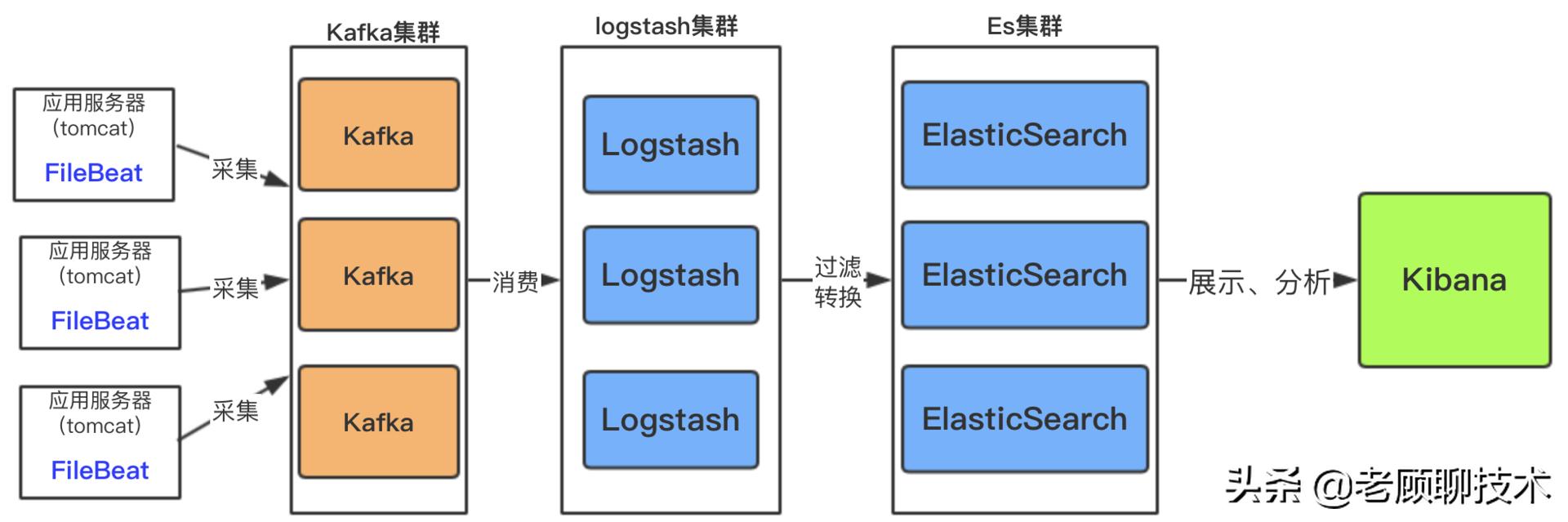 此架构适合大型集群,海量数据的业务场景,消息队列kafka集群架构有效保障了收集数据的安全性和稳定性,而后端logstash和es均采用了集群模式搭建,从整体上提高了ELK的系统的高效性,扩展性和吞吐量。