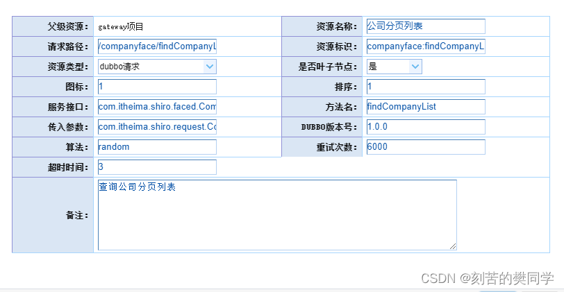 4、定义dubbo服务端接口的解析、同时为每个服务定义:轮训算法、超时时间、重试次数等参数,这些参数会在shiro-gateway中解析