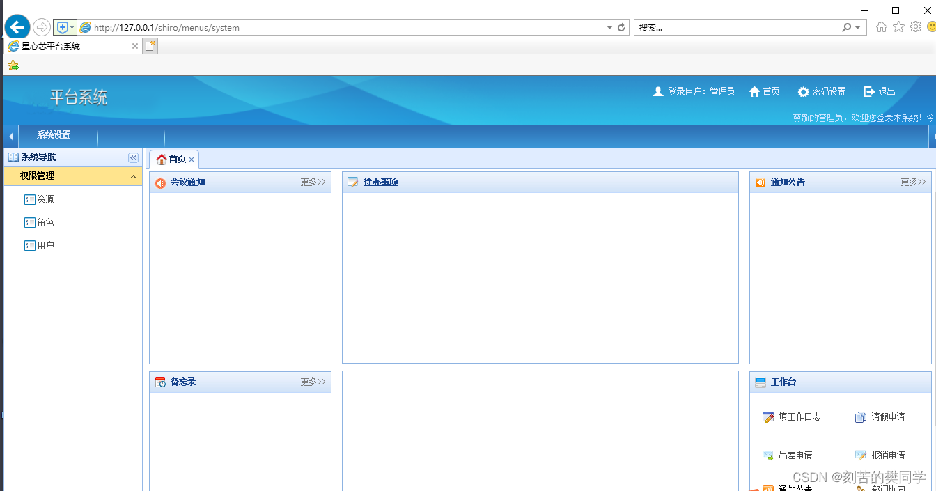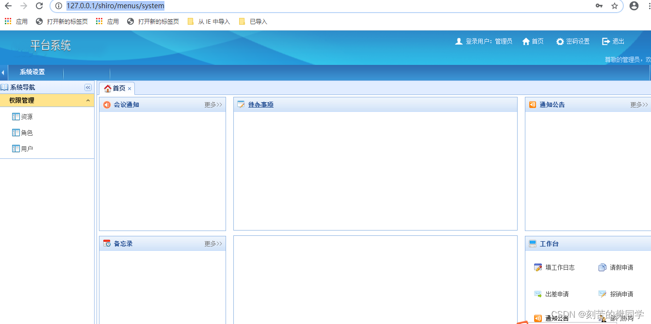 一般表示你能做什么样的操作,或者能够访问那些资源。例如:给张三赋予“店铺主管”角色,“店铺主管”具有“查询员工”、“添加员工”、“修改员工”和“删除员工”权限。此时张三能够进入系统,则可以进行这些操作 -