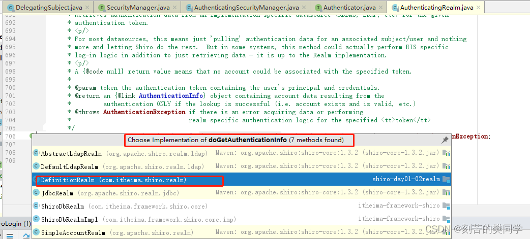 Authenticator即认证器,对用户登录时进行身份认证