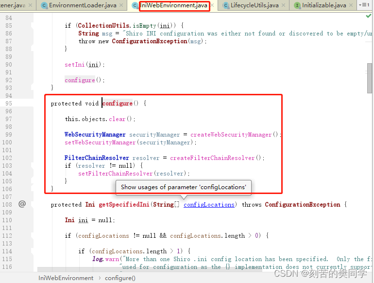 SecurityManager权限管理器,它是shiro的核心,负责对所有的subject进行安全管理。通过SecurityManager可以完成subject的认证、授权等,SecurityManager是通过Authenticator进行认证,通过Authorizer进行授权,通过SessionManager进行会话管理等。SecurityManager是一个接口,继承了Authenticator, Authorizer, SessionManager这三个接口