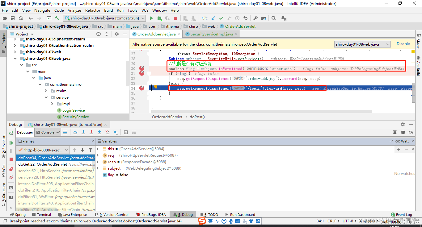 源时,会校验其是否有访问此资源的权限。