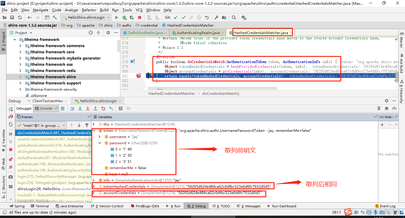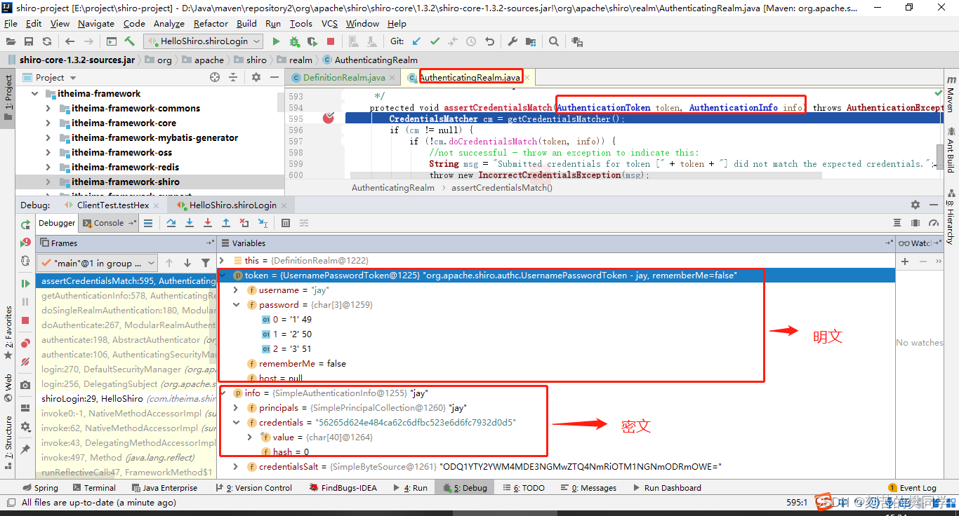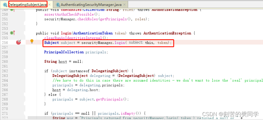 Principal:身份信息是主体(subject)进行身份认证的标识,标识必须具有唯一性,如用户名、手机号、邮箱地址等,一个主体可以有多个身份,但是必须有一个主身份(Primary Principal)。