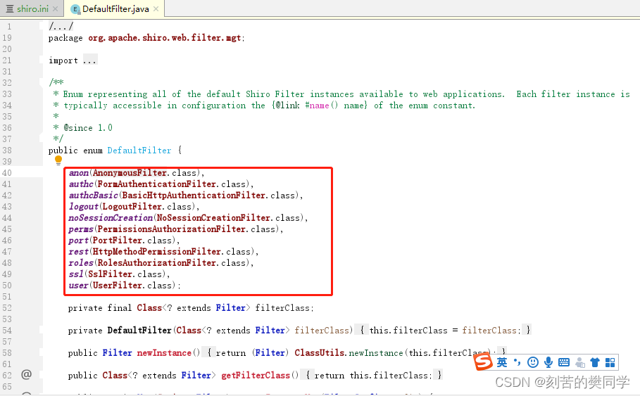 1、定义角色的唯一标识,作为过滤器过滤的标记