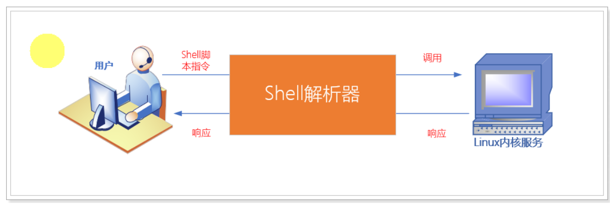 通过编写Shell命令发送给linux内核去执行, 操作就是计算机硬件. 所以Shell命令是用户操作计算机硬件的桥梁,