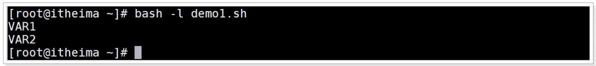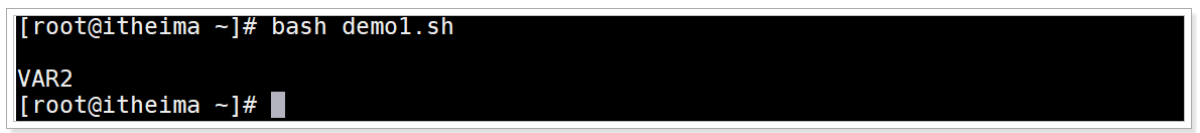 以Shell登录环境执行demo1.sh脚本文件, 观察会输出VAR2和VAR1