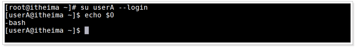 2、切换到用户userA,使用-l加载Shell登录环境变量 , 输出环境变量$0,观察输出-bash