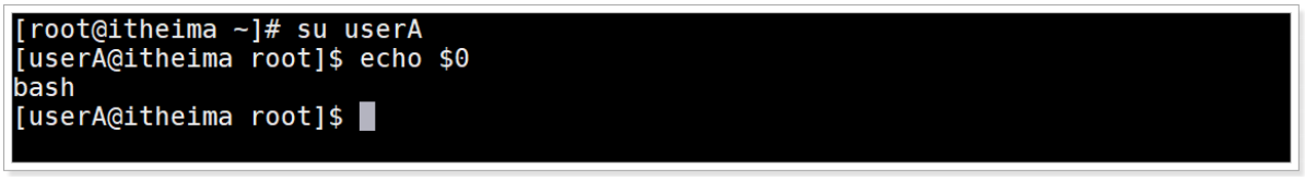 5、切换到用户userA,加载Shell非登录环境变量,输出环境变量$0,观察输出bash