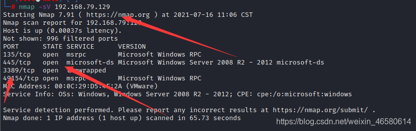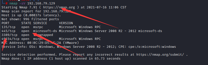 我采用的vm 2008server(测试必须处于开机状态 关机之后 测试不成功 端口关闭)