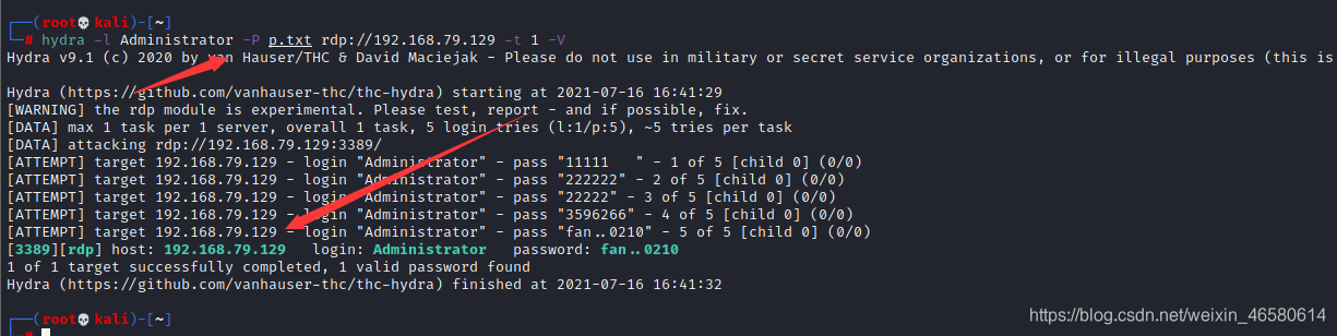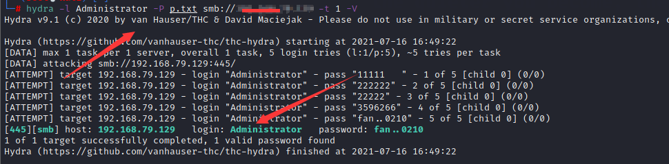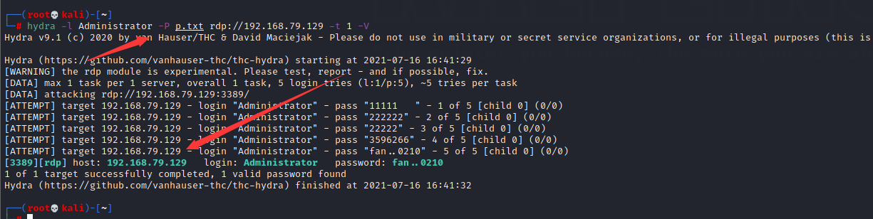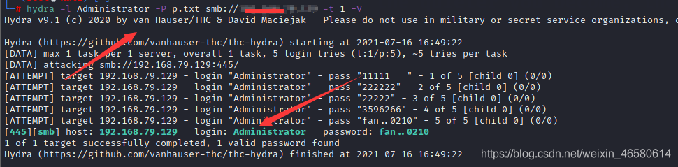 -f 在使用-M参数以后,找到第一对登录名或者密码的时候中止破解。