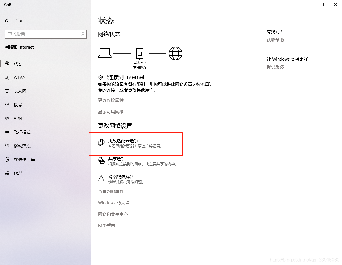 2、找到更改适配器选项
