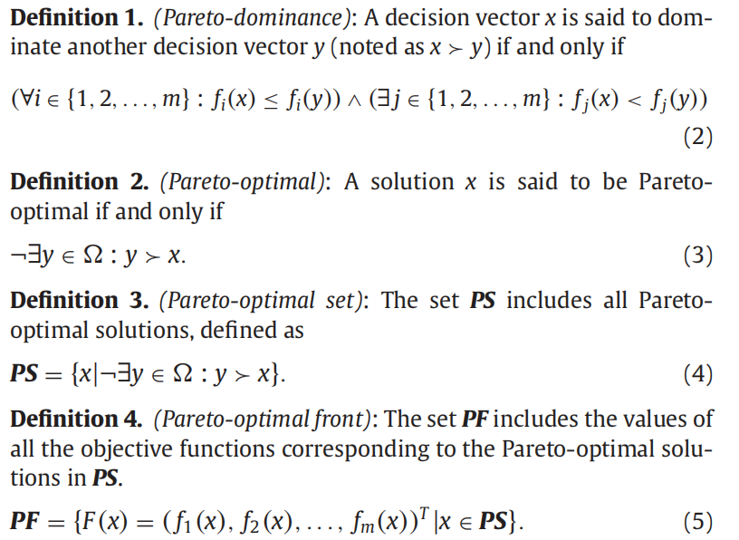 CheckDominance(x,y)返回解X和Y之间的Pareto优势关系。如果函数返回1,则表示x主导y。否则,函数返回-1。Y支配或等于X。另一个函数CrowdingDistingAssignment(A)将计算每个解决方案在A中的拥挤距离值。
