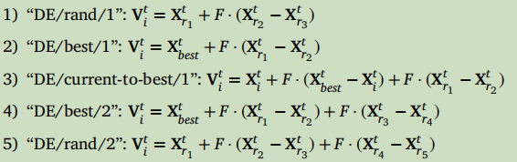 DE的性能主要取决于变异策略、交叉算子和控制参数(即标度因子F和交叉率CR),因为他们决定了不同个体之间的合作机制。