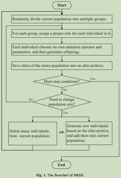 近几年的大量研究表明,有机集成不同的策略和参数是提高DE综合性能的有效方法。此外,我们认为,通过在不同进化阶段改变种群规模来合理分配计算资源是加快收敛速度的可行方法。此外,亚群体机制在种群多样性方面也表现出了积极的表现。在这些观察的启发下,我们开发了一种MRDE算法,在该算法中,整个种群它被分成多个大小相同的组。在每个组中,个体根据其适应度从候选池中选择自己的试向量生成策略和相关的控制参数。在进化过程中,为了实现计算资源的合理分配,提出了一种自适应的种群规模变化策略。MRDE框架和对其背后的核心思想作了如下阐述。