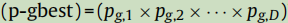 是第q个子种群第k代中粒子i的个人最佳的D维,