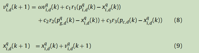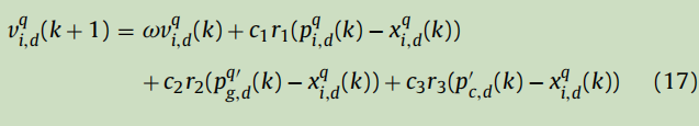 由公式三更新。c1是认知权重,c2是社会权重,c3是从其他子群体中学习的因素。r1、r2和r3是在[0,1]范围内均匀分布的三个随机数。